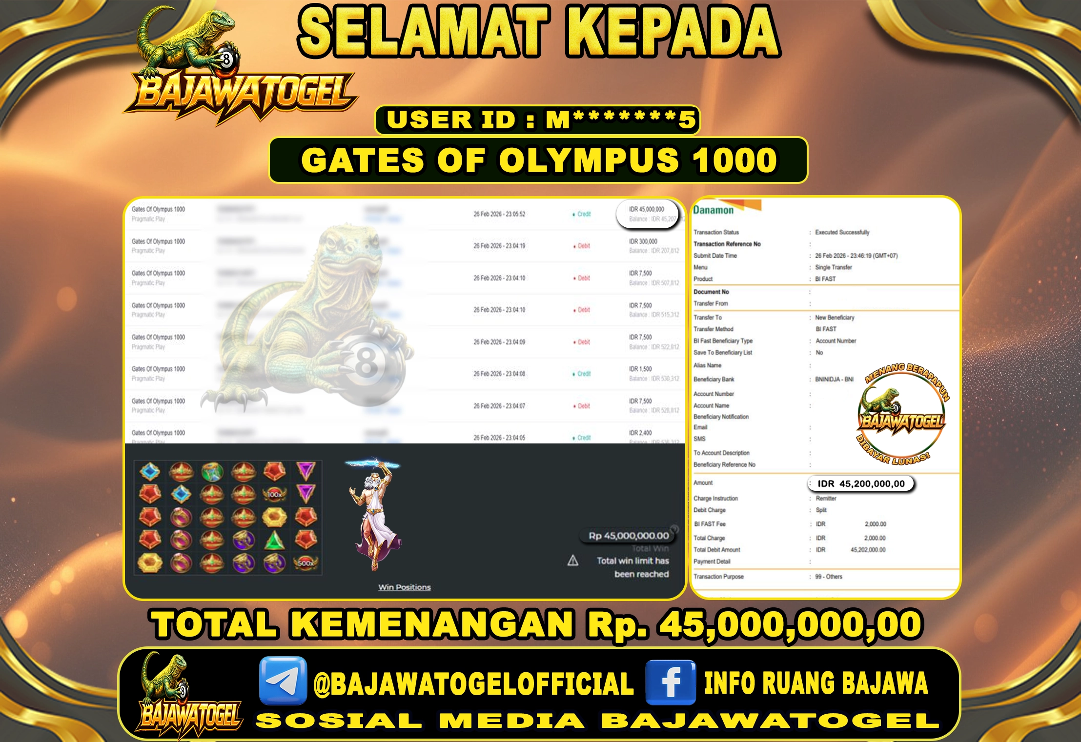 BAJAWATOGEL– Bukti Jackpot Slot Online jumat,27 Februari 2026 menjadi sorotan para pemain karena menunjukkan kemenangan nyata yang berhasil diraih member melalui sistem permainan yang transparan dan data result yang akurat. Pada penarikan hari Sabtu tersebut, banyak pemain berhasil menembus jackpot di BAJAWATOGEL.