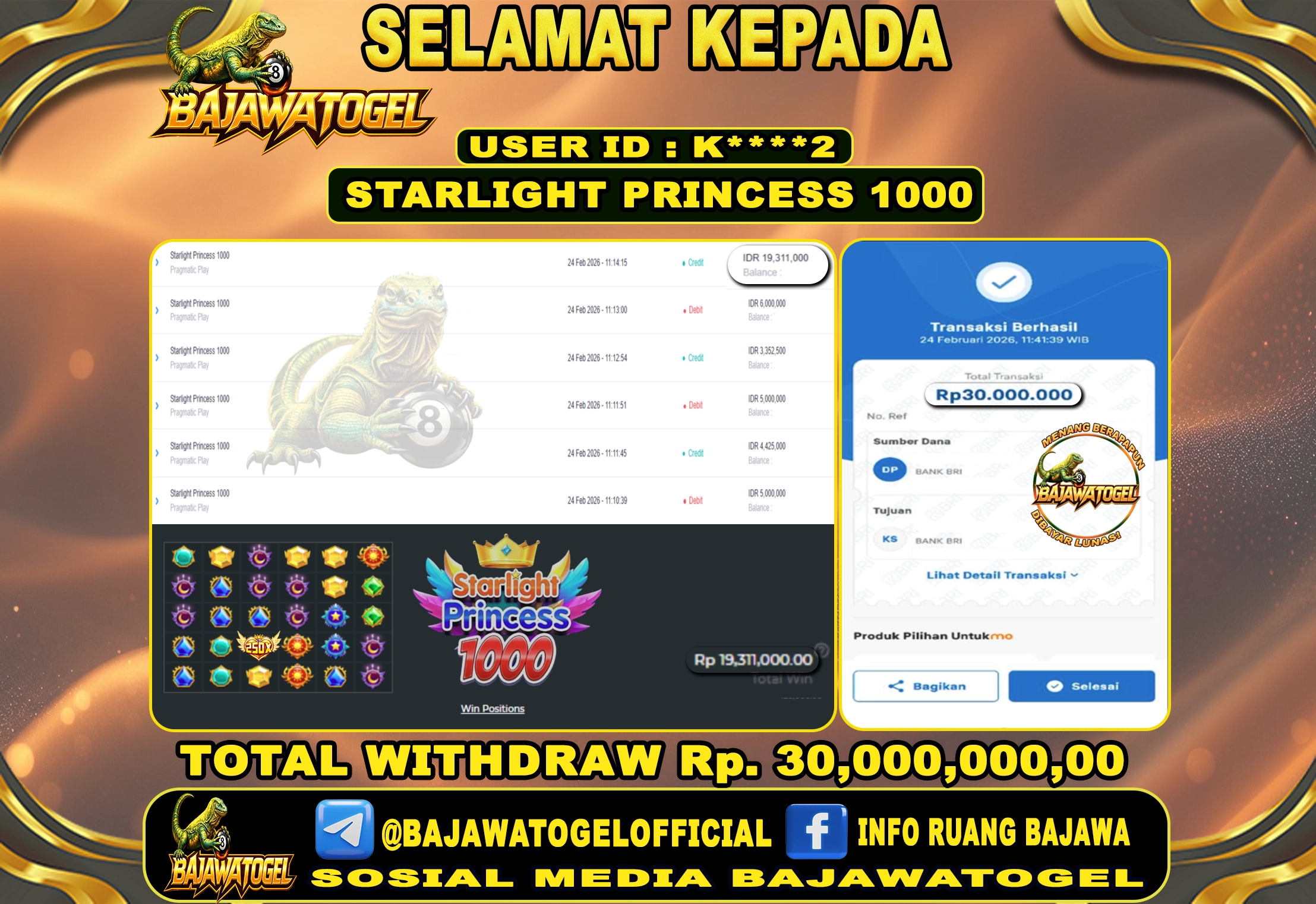 BUKTI JACKPOT SLOT STARLIGHT PRICESS 1000 SELASA, 24 FEBUARY 2026 Rp.60.000.000 - LUNAS