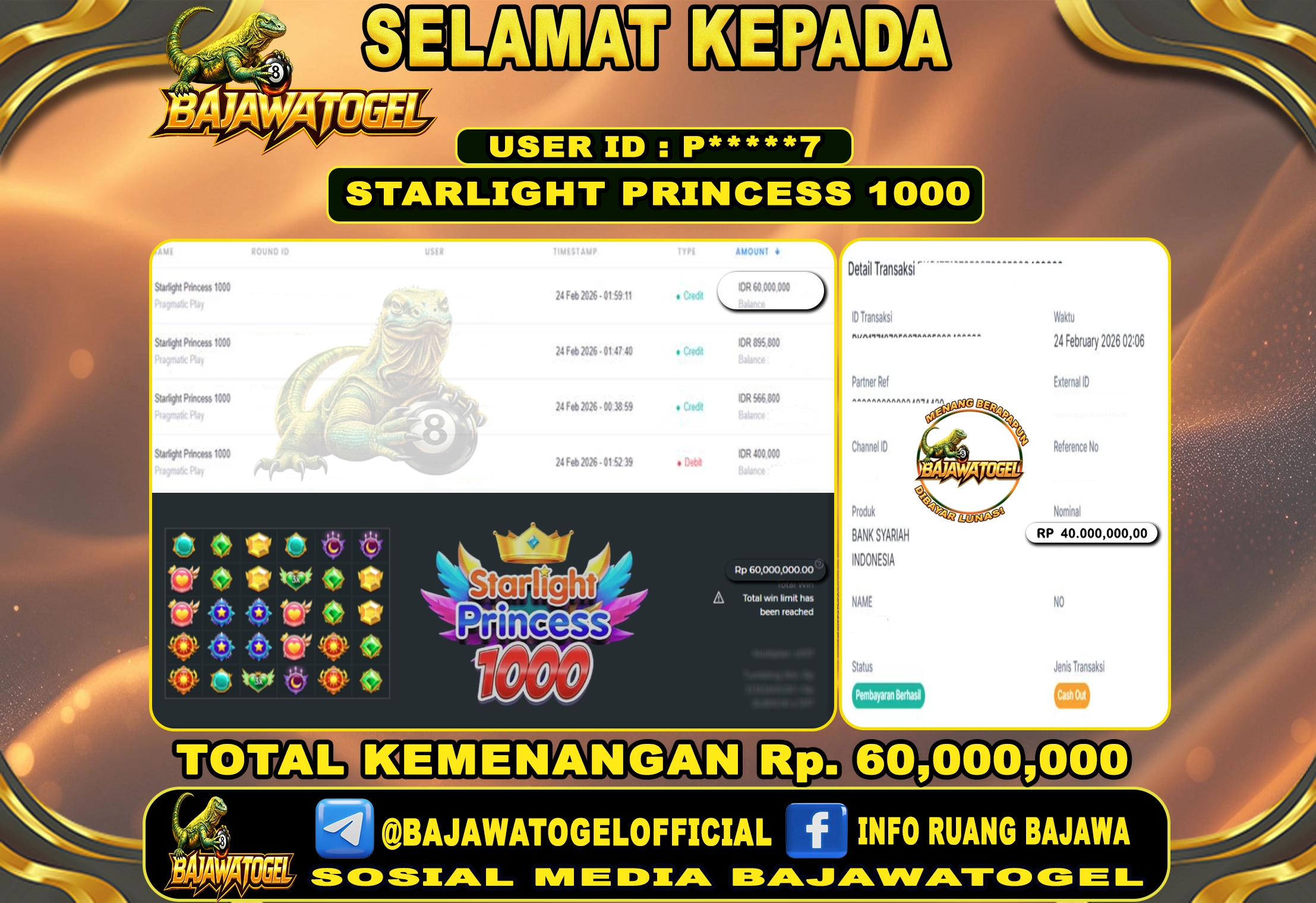 BUKTI JACKPOT SLOT STARLIGHT PRICESS 1000 SELASA, 24 FEBUARY 2026 Rp.60.000.000 - LUNAS