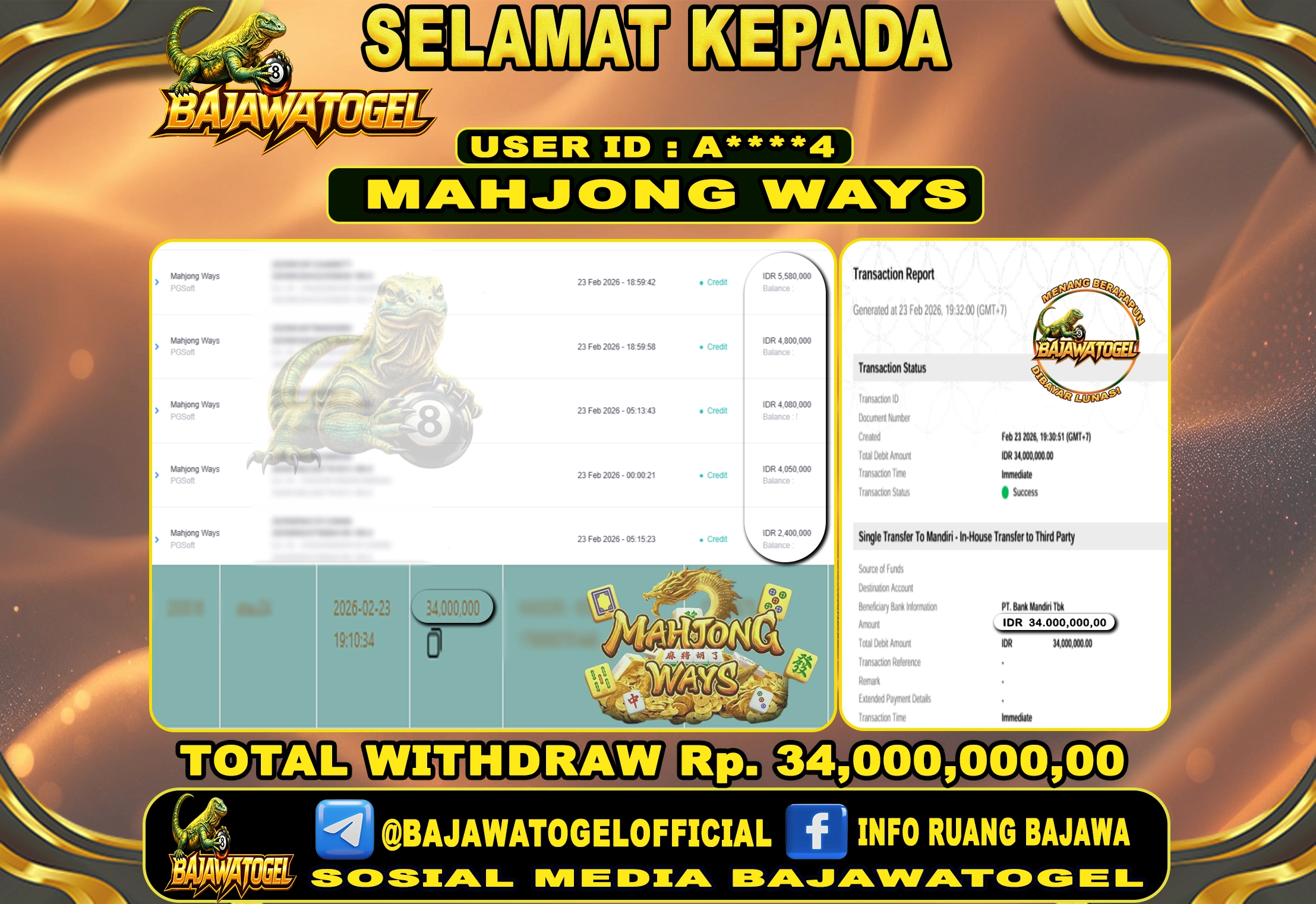 BUKTI JACKPOT SLOT MAHJONG WAYS KAMIS, 26 FEBUARY 2026 Rp.32.000.000 - LUNAS