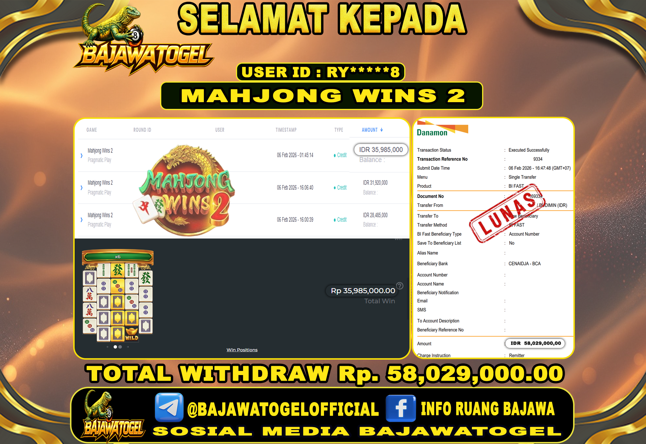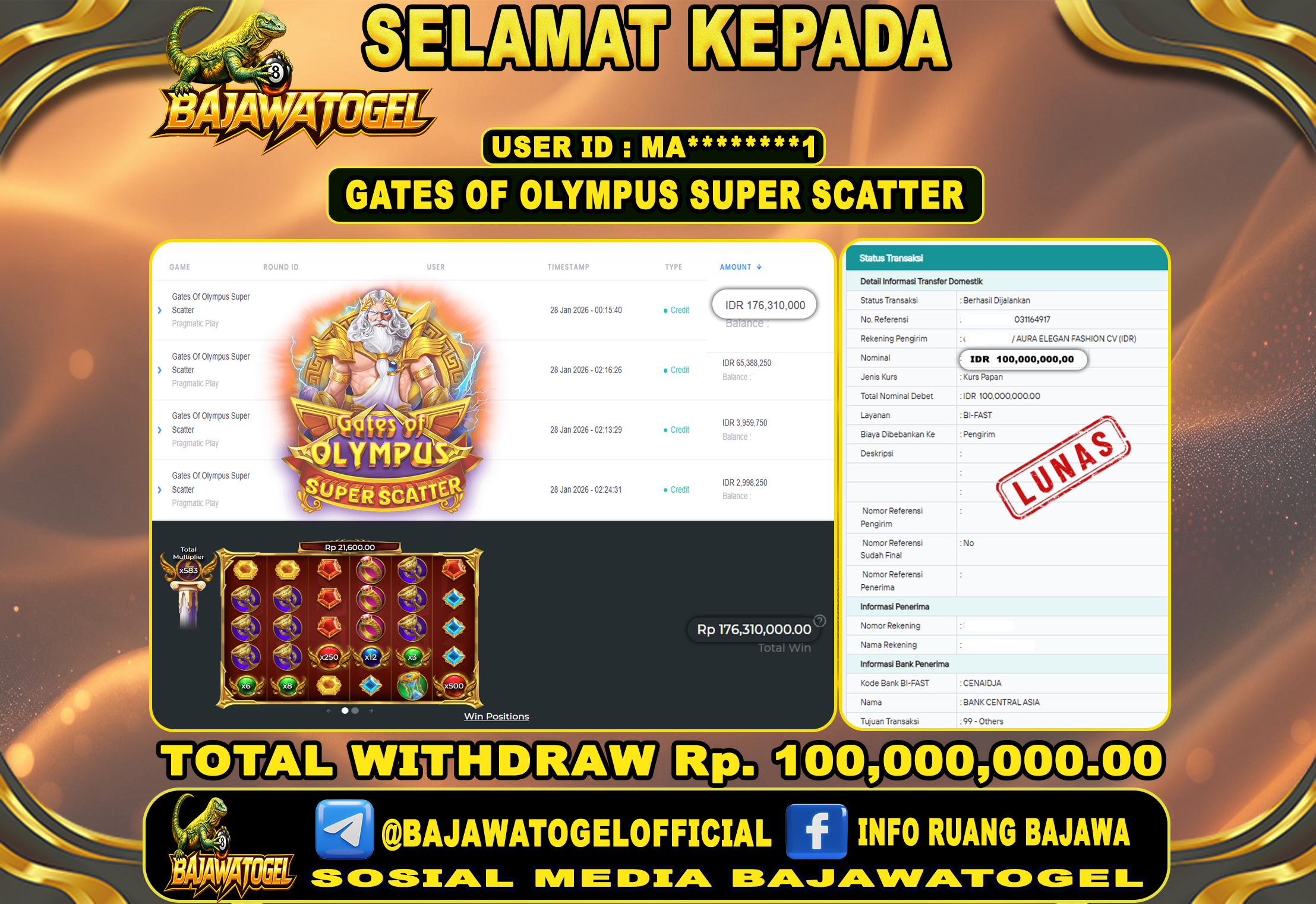 Tidak hanya janji manis, di BAJAWATOGEL kamu bisa melihat langsung bukti jackpot member yang benar-benar cair. Member yang disiplin, paham ritme permainan, dan rapi mengatur modal sudah membuktikan hasil nyata melalui kemenangan yang konsisten.